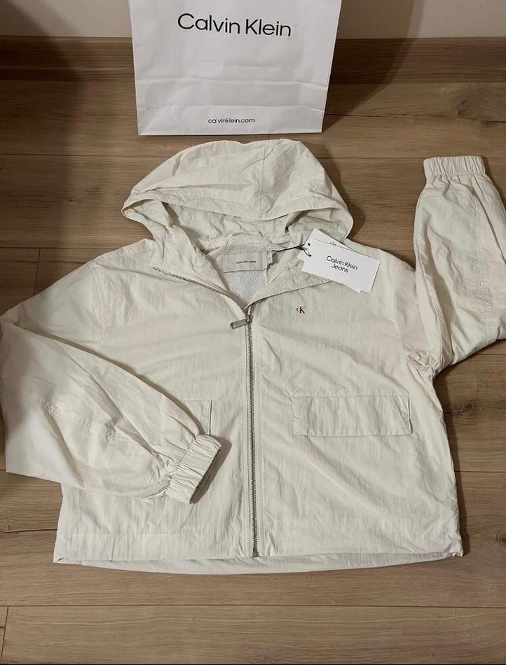 Calvin Klein kadın ceket, rahat kesim, uzun kollu ve kapüşonludur. Hafif keten kumaştan üretilmiş, desen içermeyen ve midi boyda, trend sokak stili için uygundur. En 58 boy 54 on 56 arka