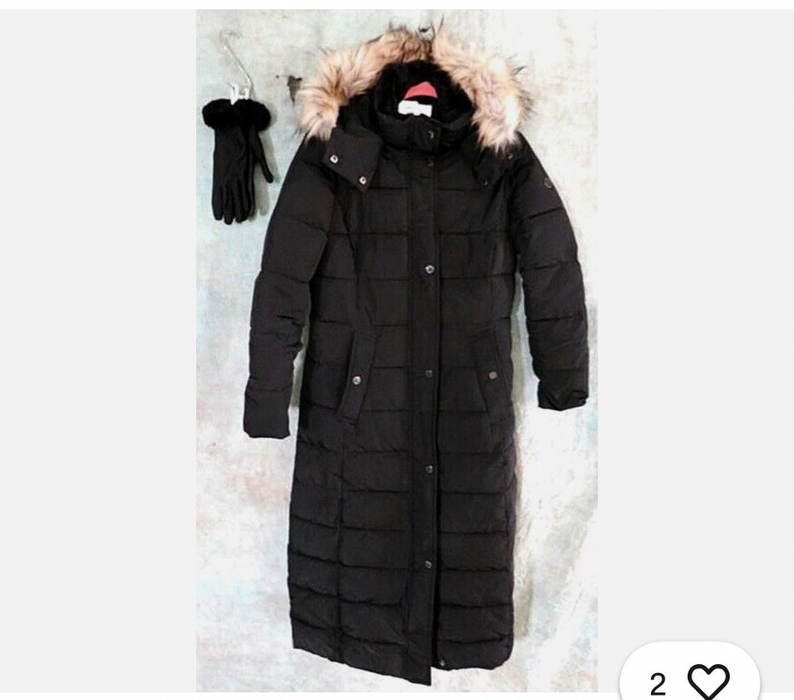 Calvin Klein Kadın Siyah Uzun Kürklü Kaban