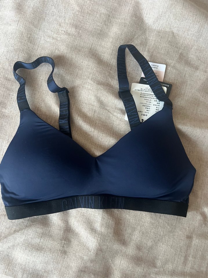 Lacivert renkte, desen içermeyen, ayarlanabilir askılı ve destekleyici elastik bantlı spor sütyeni.Hiç kullanılmadı , yurt dışından alınmıştır
