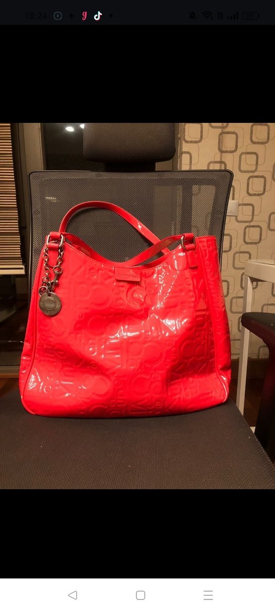 Parlak nar çiçeği rengi deri kadın çanta, orjinaldir hiç kullanmadım sadece dolapta durdu mağazadan almıştım fazla olduğu için satıyorum.Günlük kullanımda trend sokak stiline uygun. Calvin Klein markadır