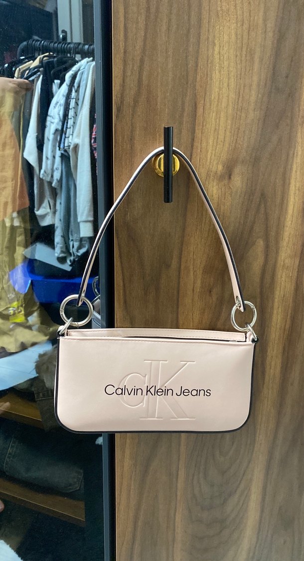 Calvin Klein'in pastel pembe deri çantası, tokalı askısı ve baskılı logosuyla trend sokak tarzına uygundur. Ürün sadece birkaç kez kullanıldı. Deformasyonu yoktur