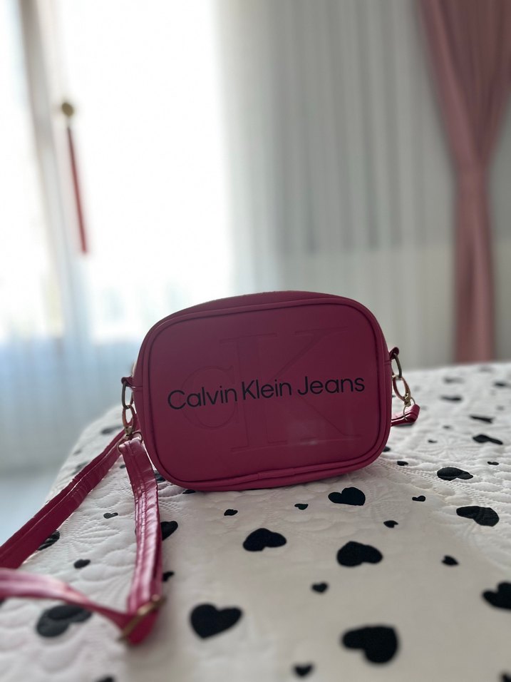 Calvin Klein pembe çapraz çanta, tokalı askıya ve baskılı desene sahiptir. Dayanıklı plastikten yapılmış, günlük kullanıma ve sokak stiline uygundur.