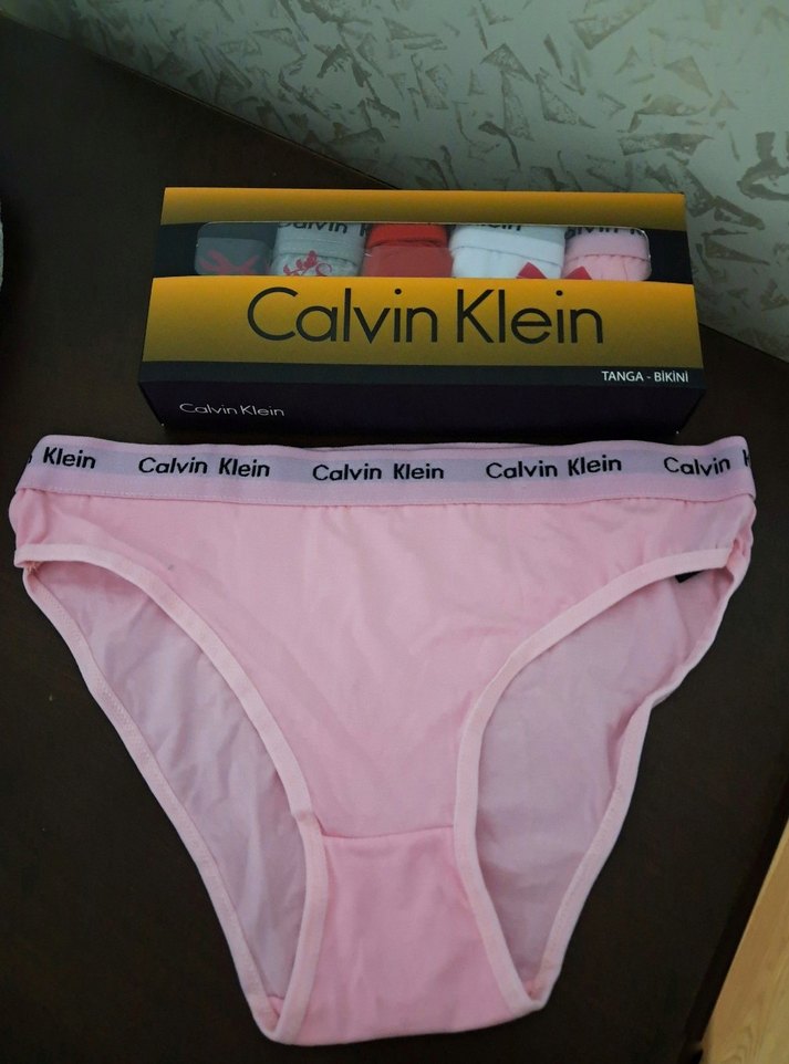 Pastel pembe renkte, mini boy baskılı, Calvin Klein logolu elastik bantlı rahat kadın külot.