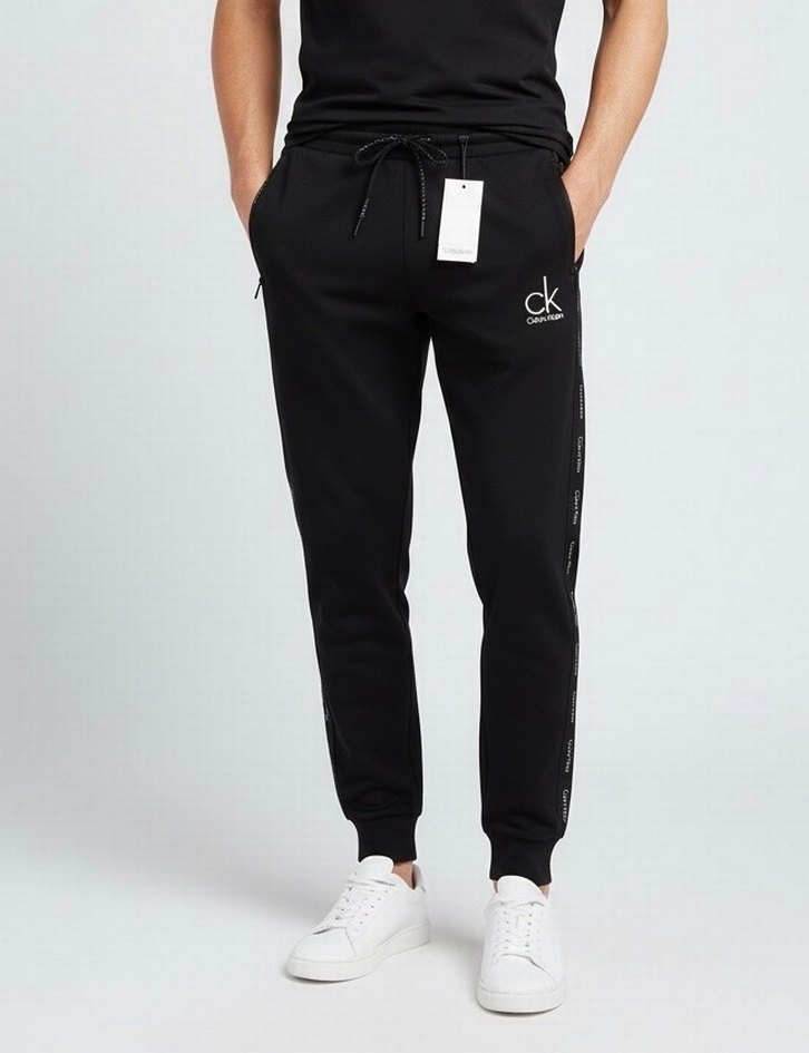 Calvin Klein siyah eşofman, normal boy ve regular fit. Yumuşak fleece kumaş, belden bağlamalı ve yanlarda logo detaylı. Spor ve sokak stili için uygun. ♂️