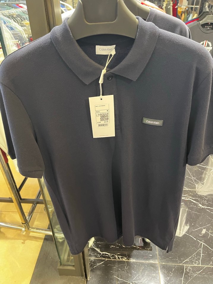 Calvin Klein marka, siyah renkli, kısa kollu, yakalı ve baskılı erkek polo tişört. Rahat kesimi ve sentetik kumaşı ile günlük kullanıma uygundur.