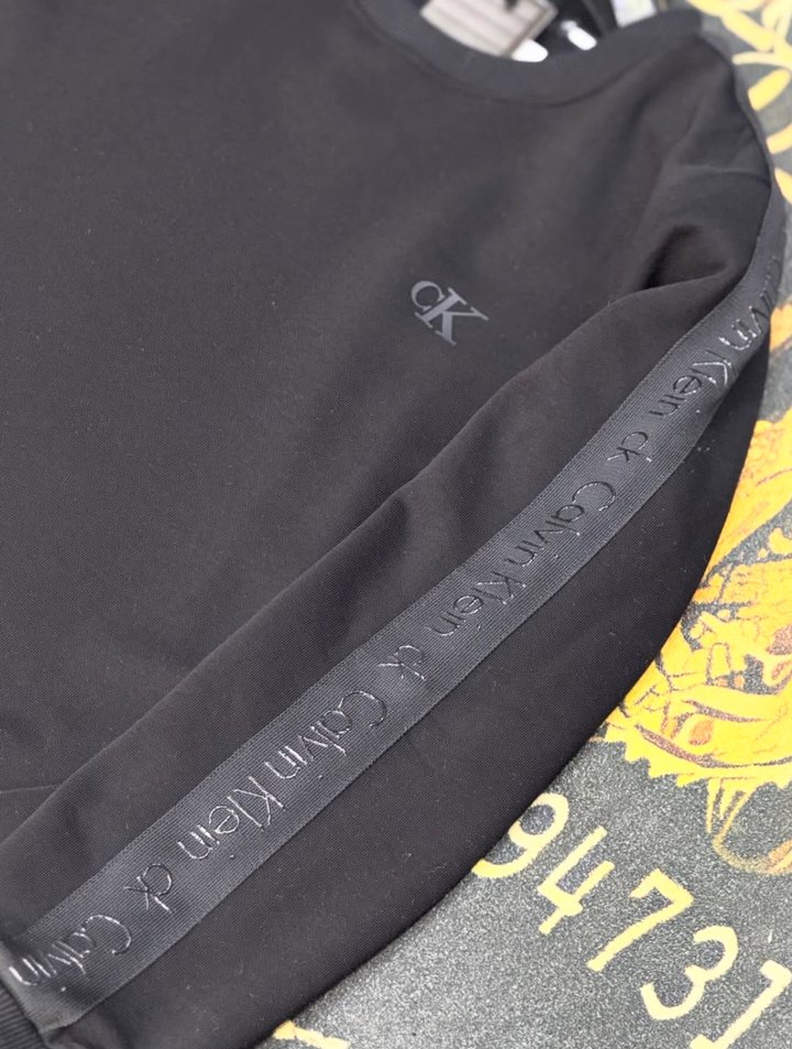 Calvin Klein siyah renkli erkek sweatshirt, yuvarlak yaka ve uzun kolludur. Kollarda kabartmalı logo detayları bulunur. Normal kesim ve kemerli yapıya sahiptir.