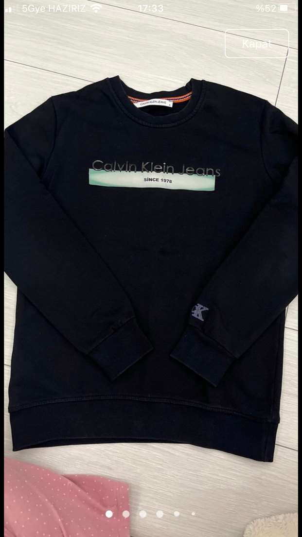 Calvin Klein siyah sweatshirt, uzun kollu ve yuvarlak yakalıdır. Önünde baskılı logo ve yazı bulunur, yumuşak ve sıcak kumaştan üretilmiştir.