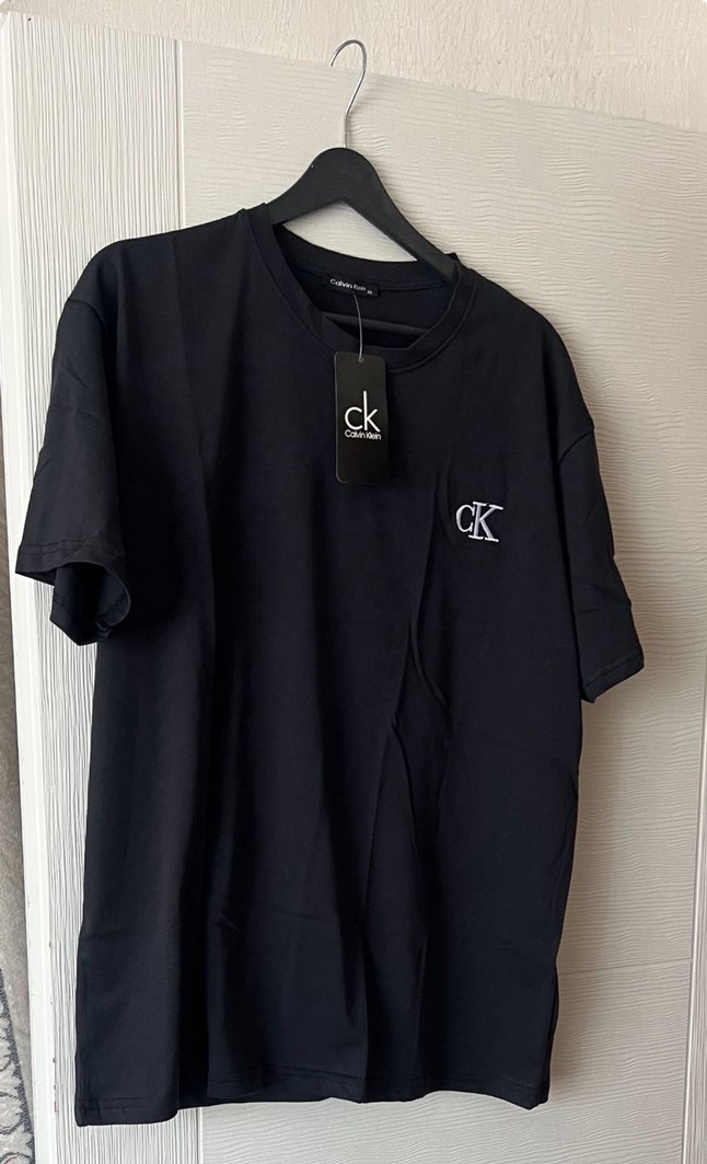 Calvin Klein markalı, siyah renkli erkek tişört, kısa kollu ve yuvarlak yaka. Pamuklu kumaştan, rahat kesimli ve baskılı CK logosu bulunur.
