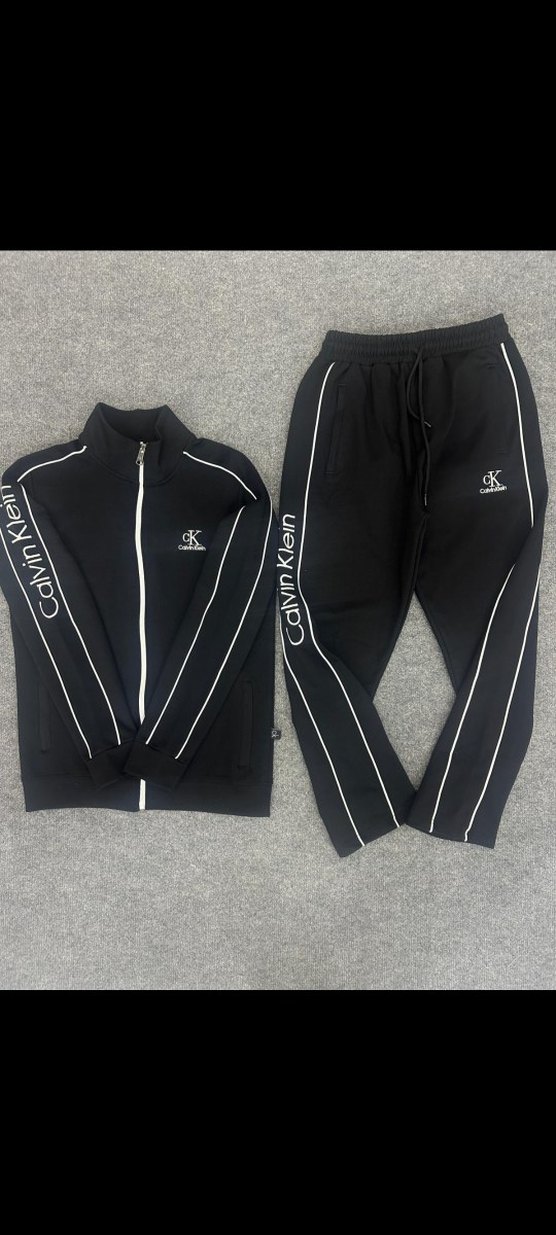 Calvin Klein markalı siyah eşofman takımı, fermuarlı ve uzun kollu tasarıma sahiptir. Yumuşak ve sıcak kumaştan üretilmiş olup, rahatlık sunar. Beyaz çizgiler ve logo detaylarıyla sokak modasına uygundur.