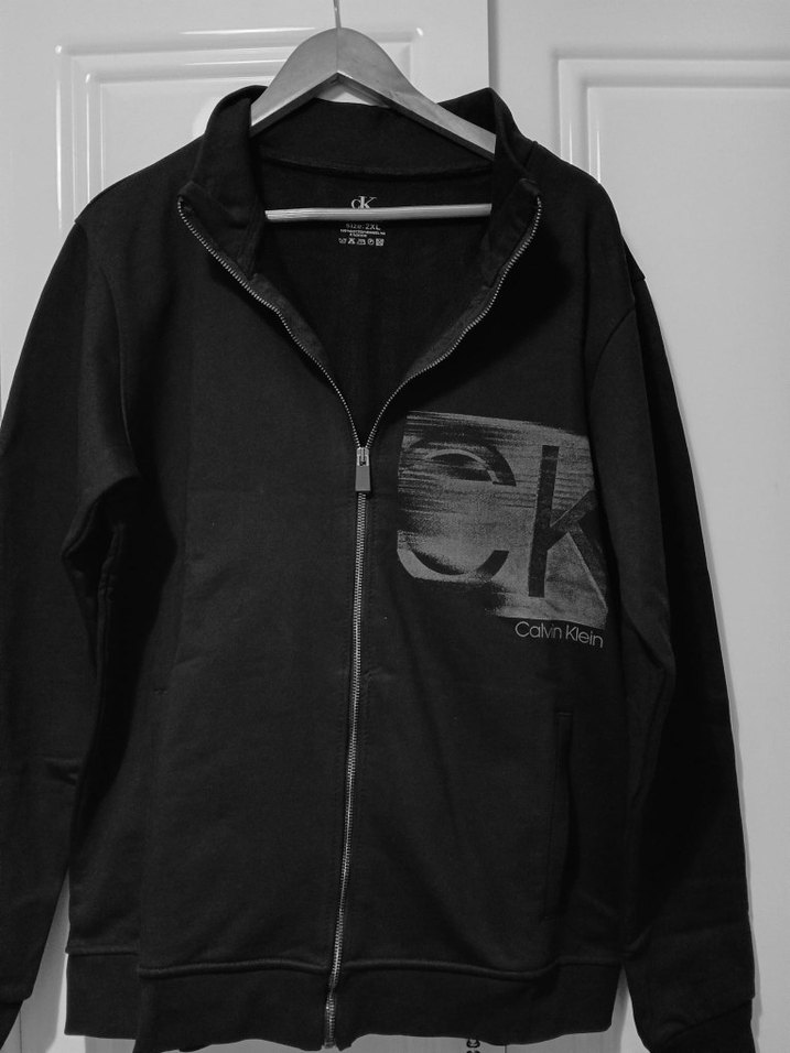 Calvin Klein siyah sweatshirt, yüksek yakalı, uzun kollu ve bol kesimdir. Önü fermuarlıdır ve göğsünde baskılı logo bulunur, günlük sokak stiline uygundur.