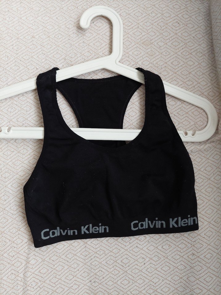 Calvin Klein marka siyah spor sütyeni, baskılı logo bandı ve sırt kısmı yarışçı kesimi ile dikkat çekiyor. olculeri görselde mevcut xs ,s uyumlu