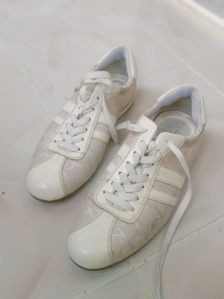 Bağcıklı beyaz spor ayakkabısı. Kauçuk tabanlı, günlük kullanım için uygundur.