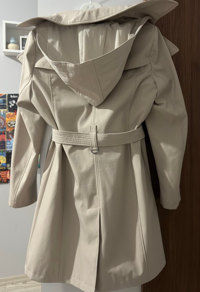 Bej renkli, kemerli ve uzun kollu kadın trençkot. Hicbir defosu yok yurt disindan almistim. Cok az giyildi.