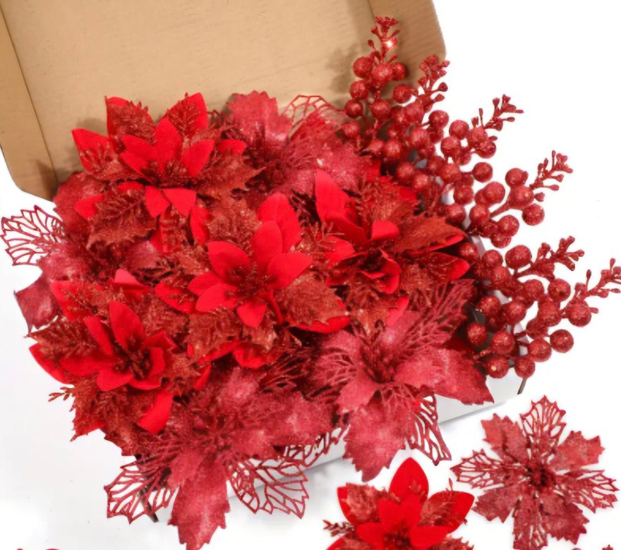 yılbaşı süs çiçek ponsettia seti 9 lu , 3 adet 15 cm ponsettia,3 adet 10 cm lik poinsettia, 3 adet kokina dal şeklinde 9 lu settir.sıfır üründür,istenilen renk gönderilir #yılbaşı #poinsettia #ponsetya #çamağacısüs #yeniyıl #yılbaşıağacı #christmas #noel #çiçek