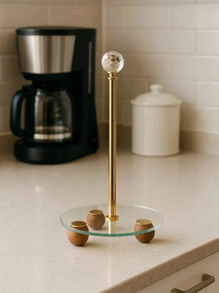 Cam ayaklı peçetelik. ayakları topludur. Başındaki elmas plastik değil camdır. Kutulu, sıfırdır.