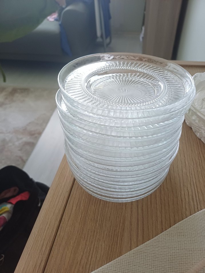Şeffaf, desensiz cam tabaklardan oluşan klasik tarzda bir settir. Hafif ve günlük kullanıma uygundur. ️12 adet birinde minik bir kusur var diğerleri sağlam
