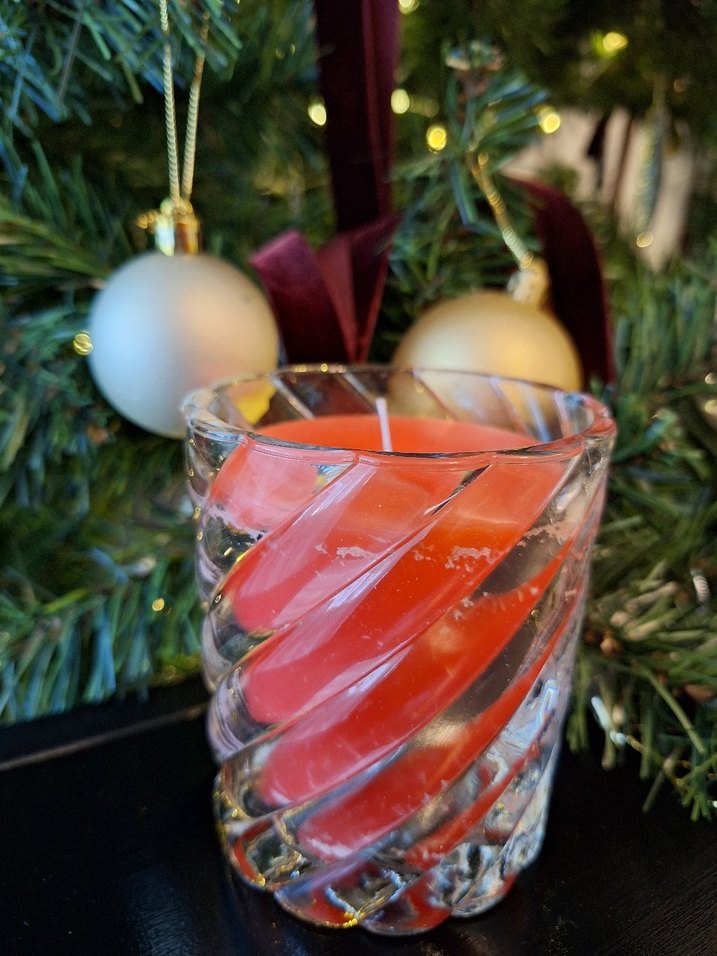 Cam icinde kirmizi mum kokusuzdur. Cam boyu 8 cm