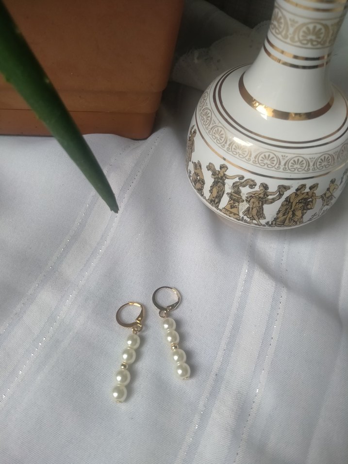 Kendi el emeğimdir. Romantic Pearl.. Davetler için harika! Vintage/ bohem tarzda cam inci küpeler. Apart kısmı kaplamadır. Kimyasal değmedigi sürece kararma yapmaz. Olia'nın el emeği Sevgiyle / Με αγάπη ❤️ Instagram:bambinomeraki Instagram:yunancameolia Etsy:https://www.etsy.com/shop/BambinoMeraki?ref=profile_header