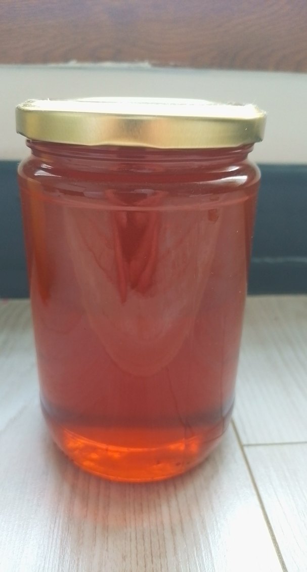 Altın kapaklı cam kavanozda, zengin amber renkli bal. Erzurum Hakiki Yayla Balı