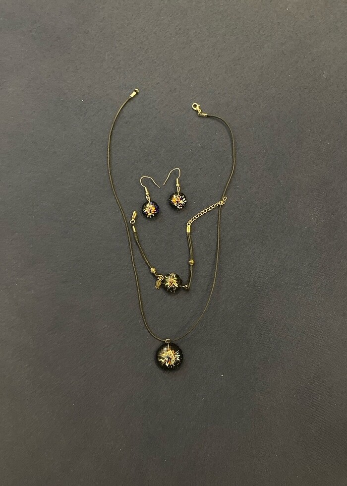 Cam özel yapım kolye küpe bileklik set Hiç kullanılmadı temiz