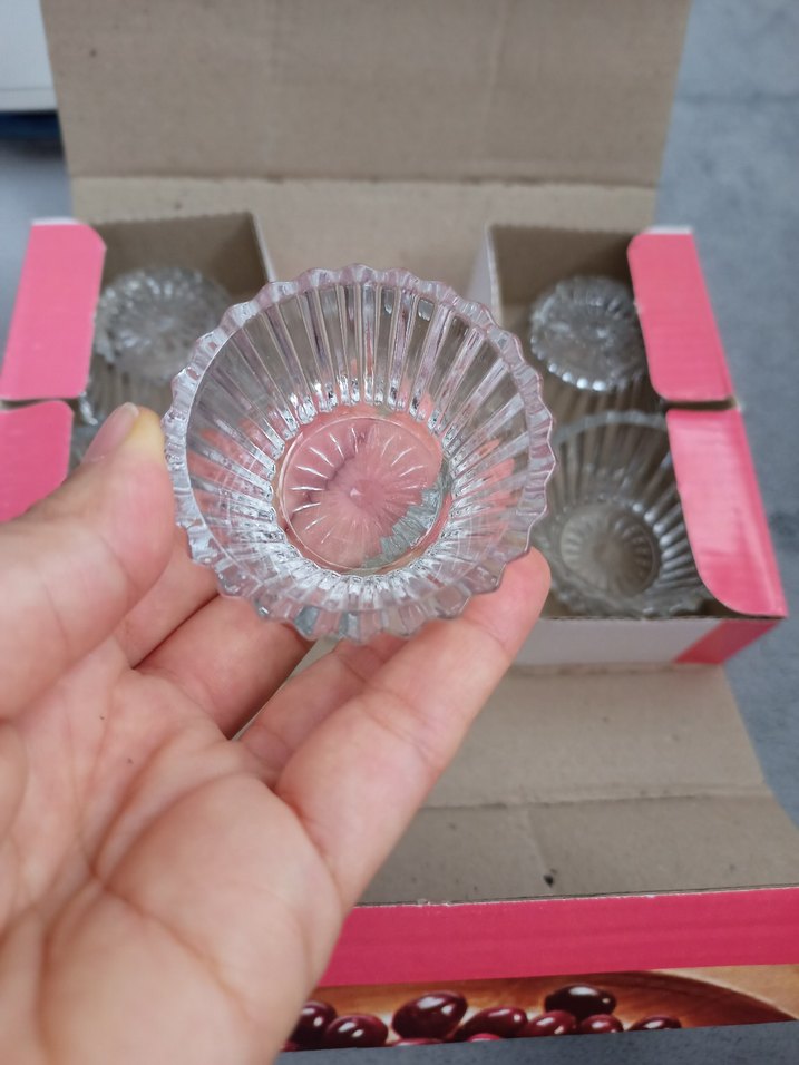 Kahve yanında veya kahvaltıda kullanabilirsiniz vintage tarzda camdan yapılmış küçük kaseler seti. Ribbed desenlidir, servis veya dekorasyon için uygundur. ️