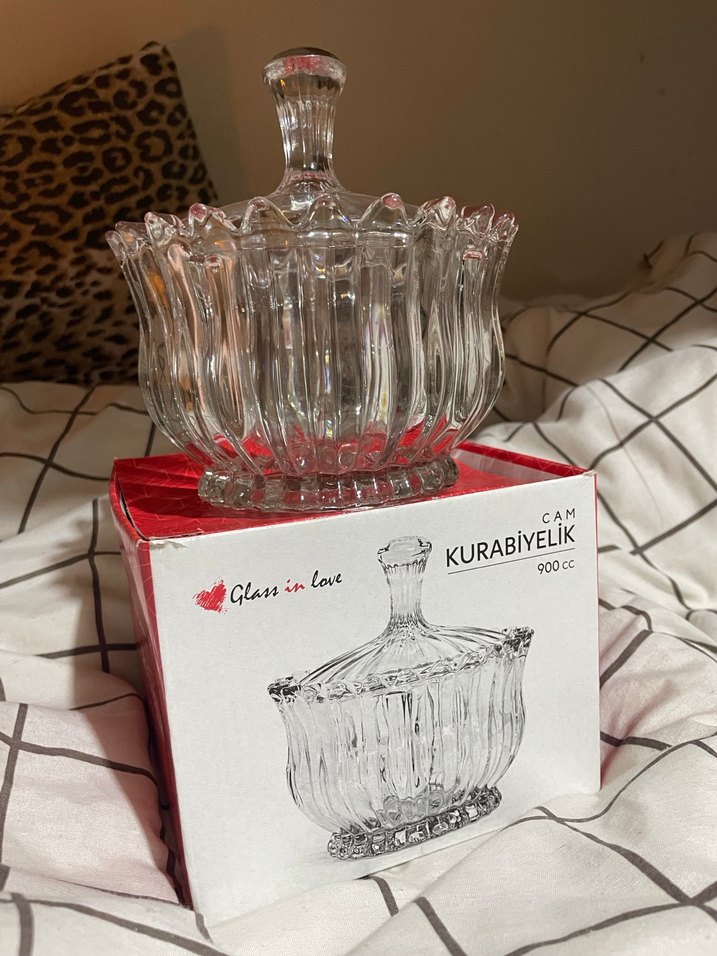 900 cc hacminde, cam kurabiyelik. Şık kapaklı ve işlevsel tasarım. Markası Glassinlove.