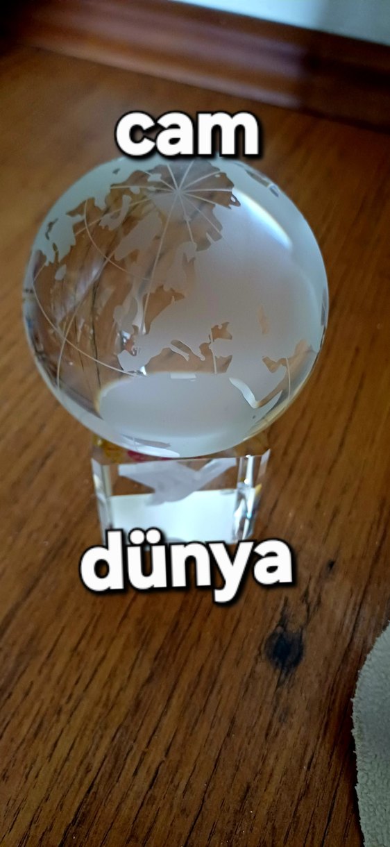 20 yıl kadar önce Yapı Kredi Bankasından alındı, oldukça ağırdır, Belirtebileceğim hiç bir deformasyon ve kusuru yoktur, güle güle kullanılsın kıtaların detaylı işlendiği dünya şeklinde bir figürin ve şeffaf bir kaide üzerine oturur.