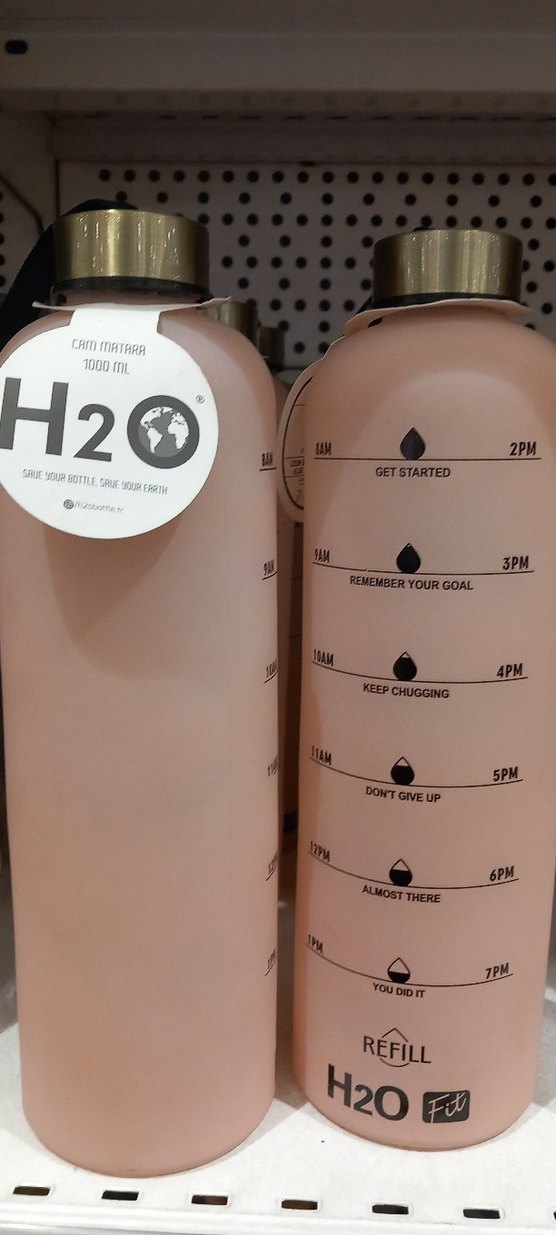 1000 ML gün boyunca su içmeyi teşvik eden zaman işaretleri ve motive edici ifadeler içerir.