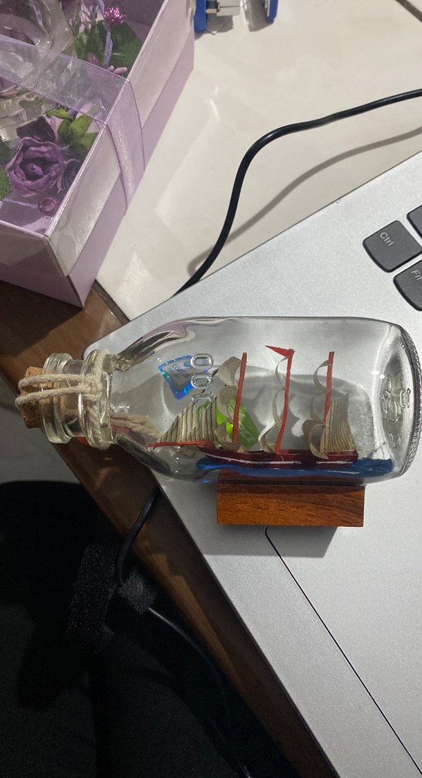 Cam Şişe İçinde Renkli Yelkenli Figür