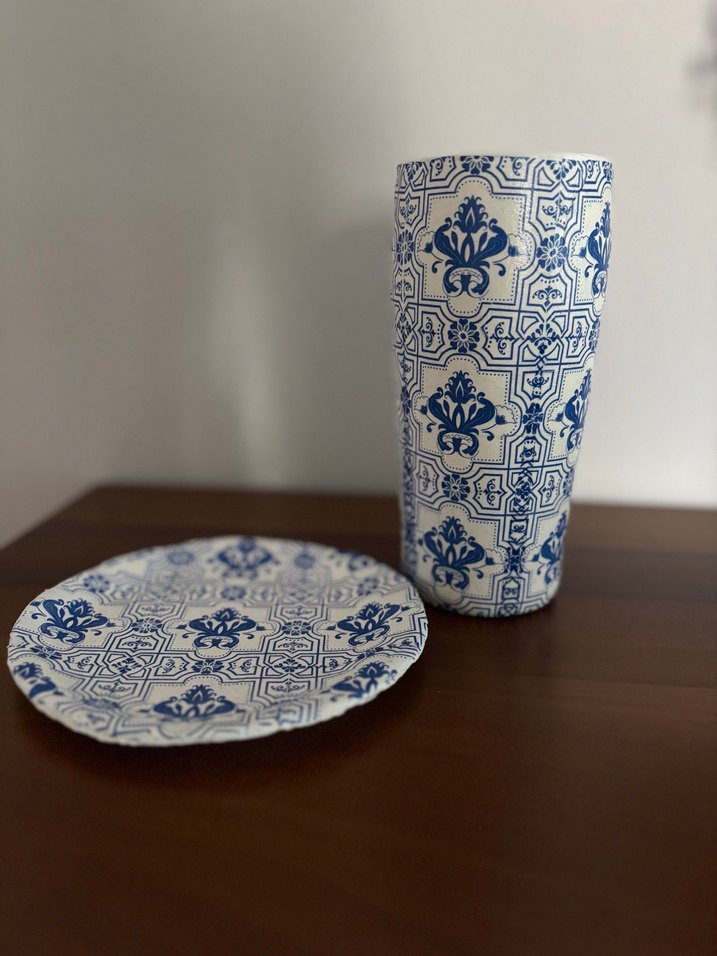 Cam vazo ve seramik tabak