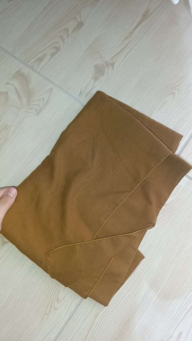 Drapeli tasarıma sahip, düz bej renkli, sentetik kumaştan kadın şalı. Minimalist sokak modasına uygun.