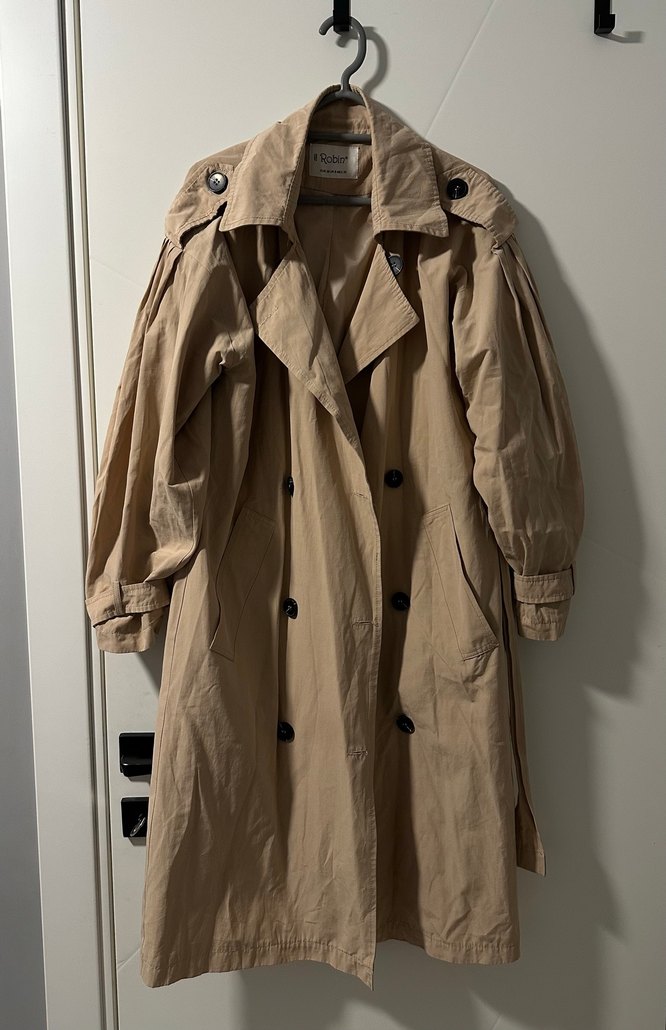 Arka yakasından uzunluğu: 110cm ! Bej renkli, düğmeli ve notlu yakalı uzun keten trençkot. Salaş kesimi ile günlük rahat sokak stili için uygundur. 36 bedendir.