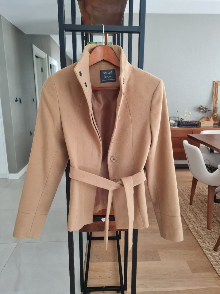 Mudo öarka, 36 beden, fit kesim, kaşe kaban. Çok şık. Ben maalesef kilo aldığımdangiyinemedim. Sadece 2 ya da 3 kez giyilmiştir. Tertemiz duruyor