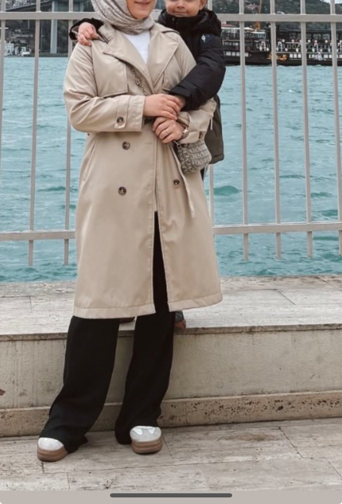 Kadınlar için uzun boylu, kemerli ve yakalı camel rengi trençkot. Kemerli astarsız trenç yeniden farksız boyum 162 70 kg ya kadsr rahatlıkla olur