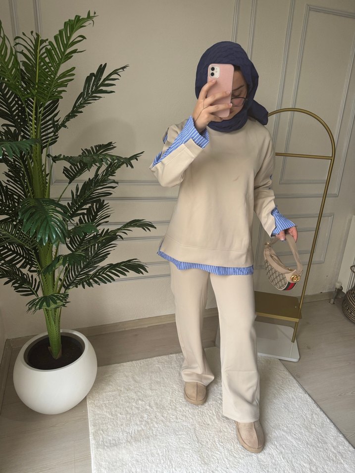 Camel renkli kadın takımı, normal kesim ve midi boydadır. Yuvarlak yaka ve uzun kolludur, pürüzsüz sentetik kumaştan yapılmıştır. Desensiz tasarımıyla günlük şıklık sunar. ✨