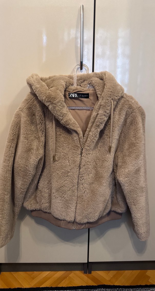 Camel renk kapüşonlu kürk