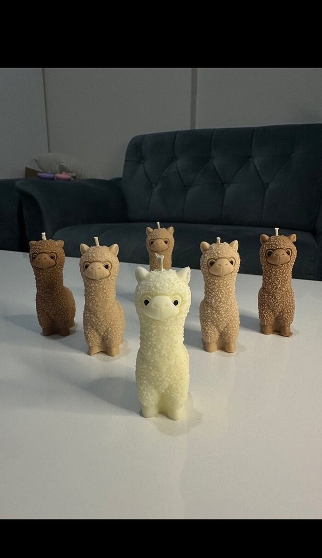 Hafif camel renginde, dokulu yüzeye sahip alpaka şekilli mumlar, dekoratif kullanım için uygundur. ️