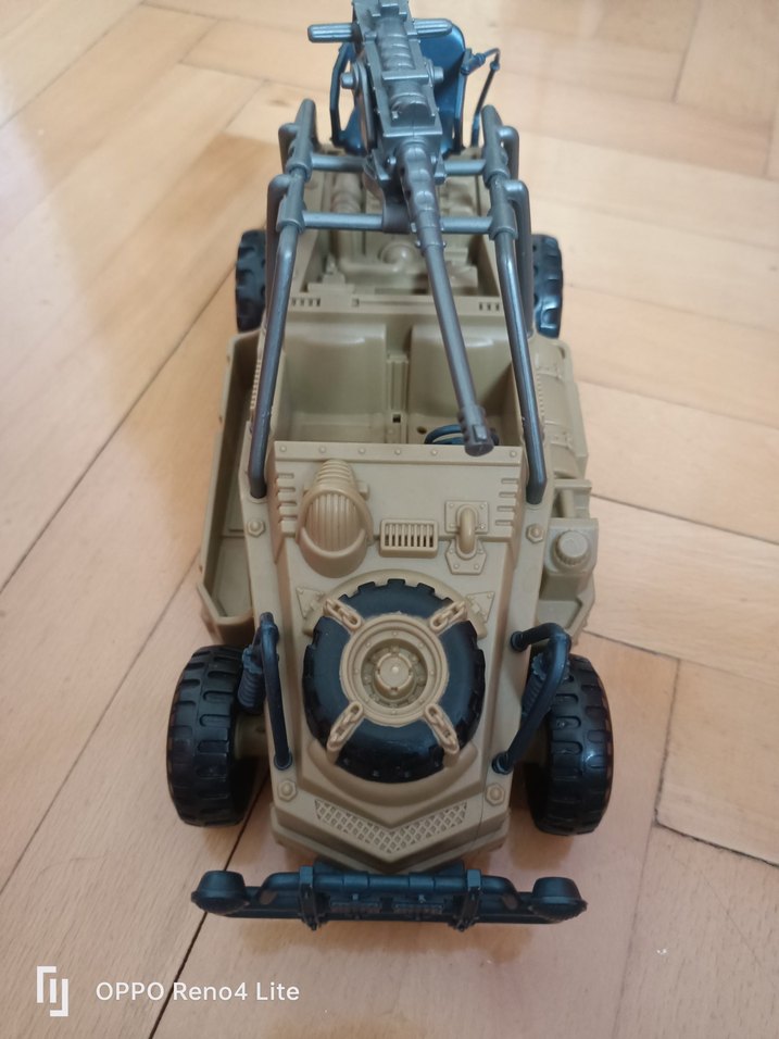 Camel renkli oyuncak araç, detaylı askeri tasarım ve tekerleklerle gerçekçi oyun sunar. Üzerinde makineli tüfek bulunur.