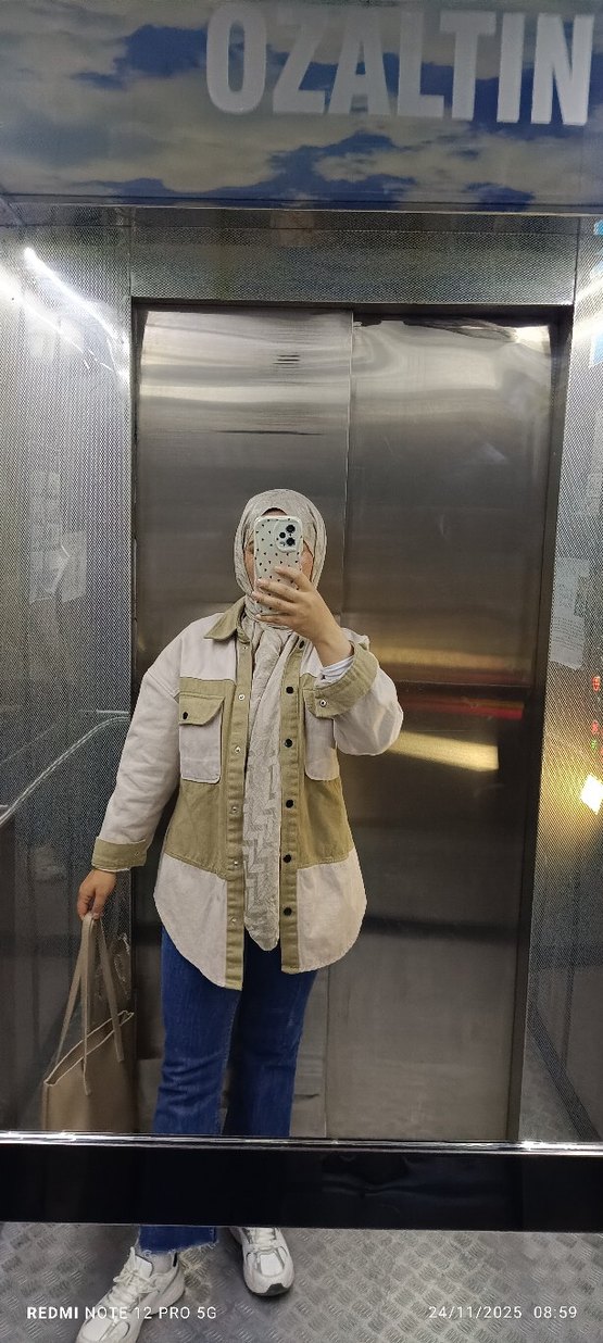 Yüksek yakalı, uzun kollu ve bol kesim bu midi ceket, yumuşak pamuktan bağlama desenli kumaşla tasarlanmıştır. Camel tonlarında rahat ve şık bir görünüme sahiptir.