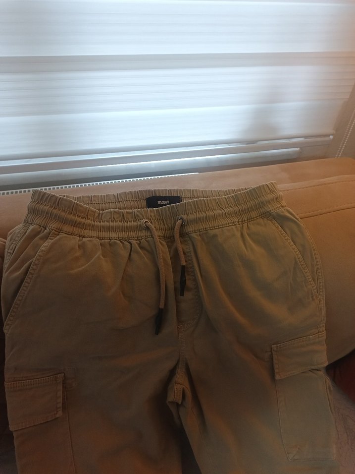 Camel renkli belden lastikli kargo pantolon 42 beden