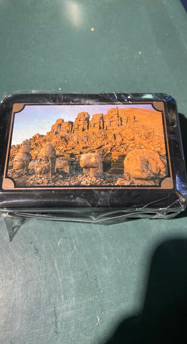 Camel renginde kutuda, kaya oluşumları ve doğal manzara resmi bulunan puzzle. Parçalar koyu tonlarda detaylı bir görüntü oluşturur.