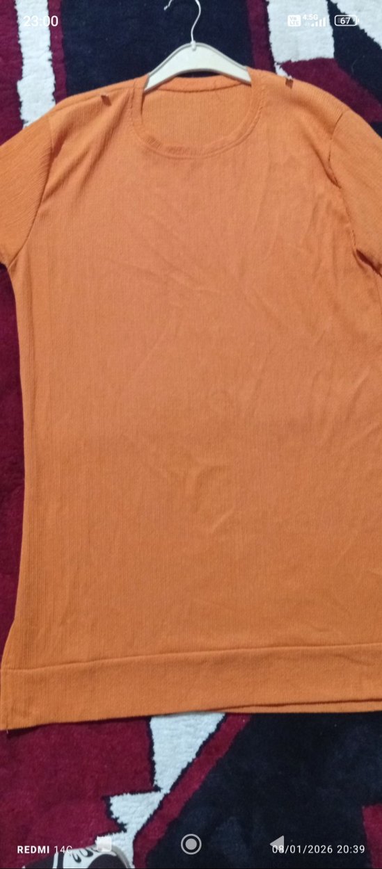 Kayık yaka ve kısa kollu, drapeli tasarıma sahip, ince ve ipeksi kumaştan yapılmış hamile bluzu. Hafif camel rengi ve midi boy ile günlük kullanıma Birkaç kez kullanıldı