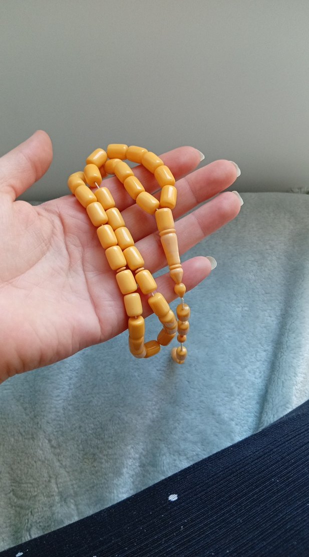 Camel renkli, minimalist tasarımlı erkek tesbih. Düzgün, dikdörtgen taneleri konforlu kullanım sağlar.