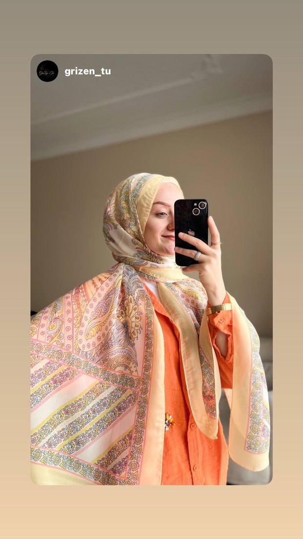 Pastel camel renginde, ipek dokulu ve bohem tarzda drapeli kadın şalı.