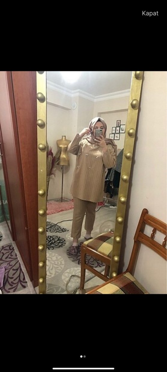 Camel renginde, regular fit ve midi boyda kadın takımı. Uzun kollu, kesimli yaka ve çizgili desen üstü taşlıdır. sentetik kumaştan günlük sokak stiline uygun şık bir takım 38 40 42 bedenlere olur