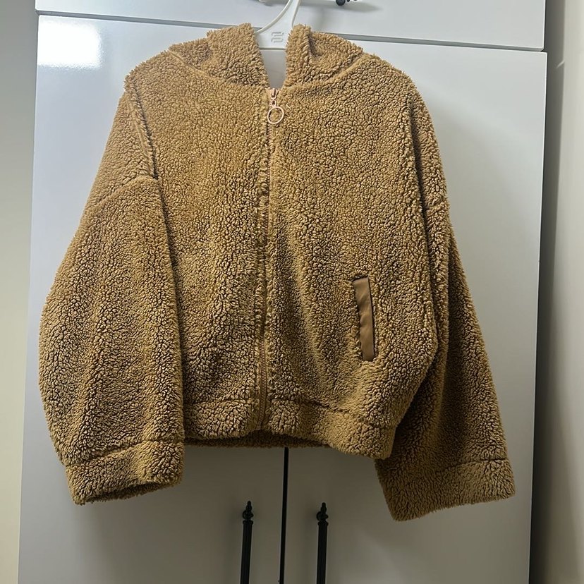 Camel renkli, peluş detaylı kadın ceket. Bedenine oturan, baskılı desenli, yuvarlak yaka ve uzun kolludur. Midi boyda, rahat ve sıcak dokusu günlük kullanıma uygundur.#camel#peluş#polar#mont#fulla#yk2