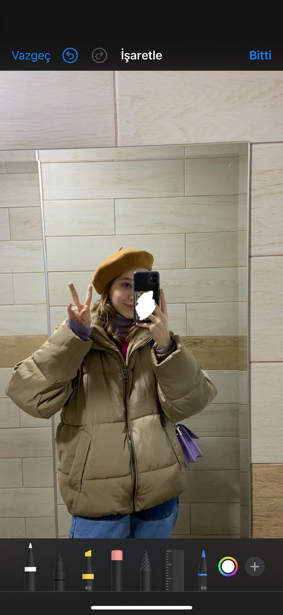 Camel renkli, oversize, kadın kışlık monttur. Uzun kollu ve kapşonlu, yumuşak ve sıcak kumaştan yapılmıştır. Puff detaylarıyla rahat ve şık görünüme sahiptir. P&B’den aldım, defosu yok. Rahat soğuktan koruyor, oversize
