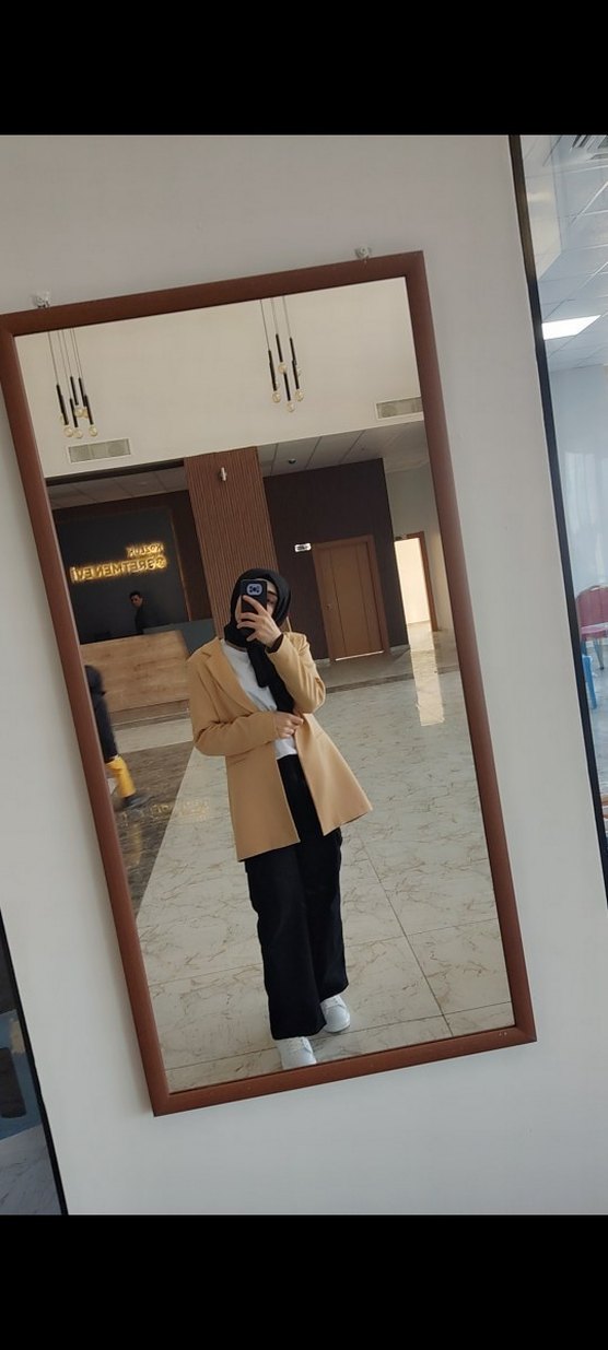 Hafif camel renginde, ipeksi kumaştan midi uzunlukta kadın blazer ceket. Notch yaka ve uzun kolludur, günlük kullanıma uygundur.