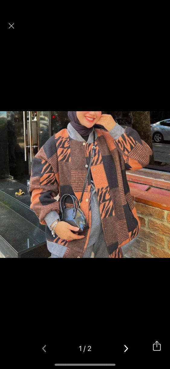 Geniş kesim, camel ve gri renklerde örgü desenli kadın kabanıdır. Uzun kollu ve boğazlı yaka, yumuşak ve sıcak kumaştan yapılmıştır, günlük kullanım için uygundur.