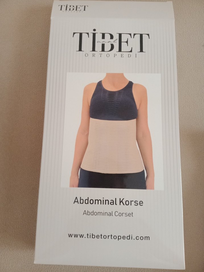 Camel renkli, baskılı desenli ve normal midi boyda ortopedik abdominal korse, destek ve konfor sağlar. AYRANCILAR